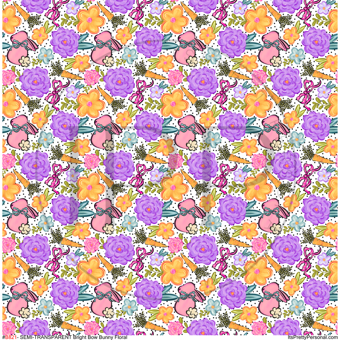 #B821- SEMI-TRANSPARENT- Bright Bow Bunny Floral -12x12 Pattern Vinyl