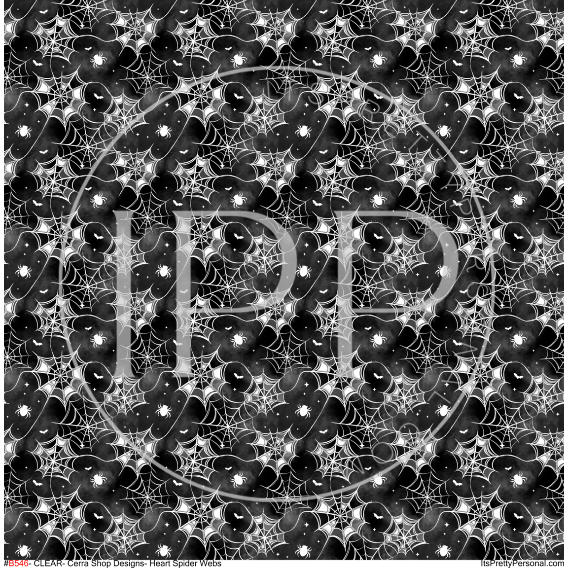 #B546- CLEAR Spooky Black White Spider Web- 12x12 Pattern Vinyl