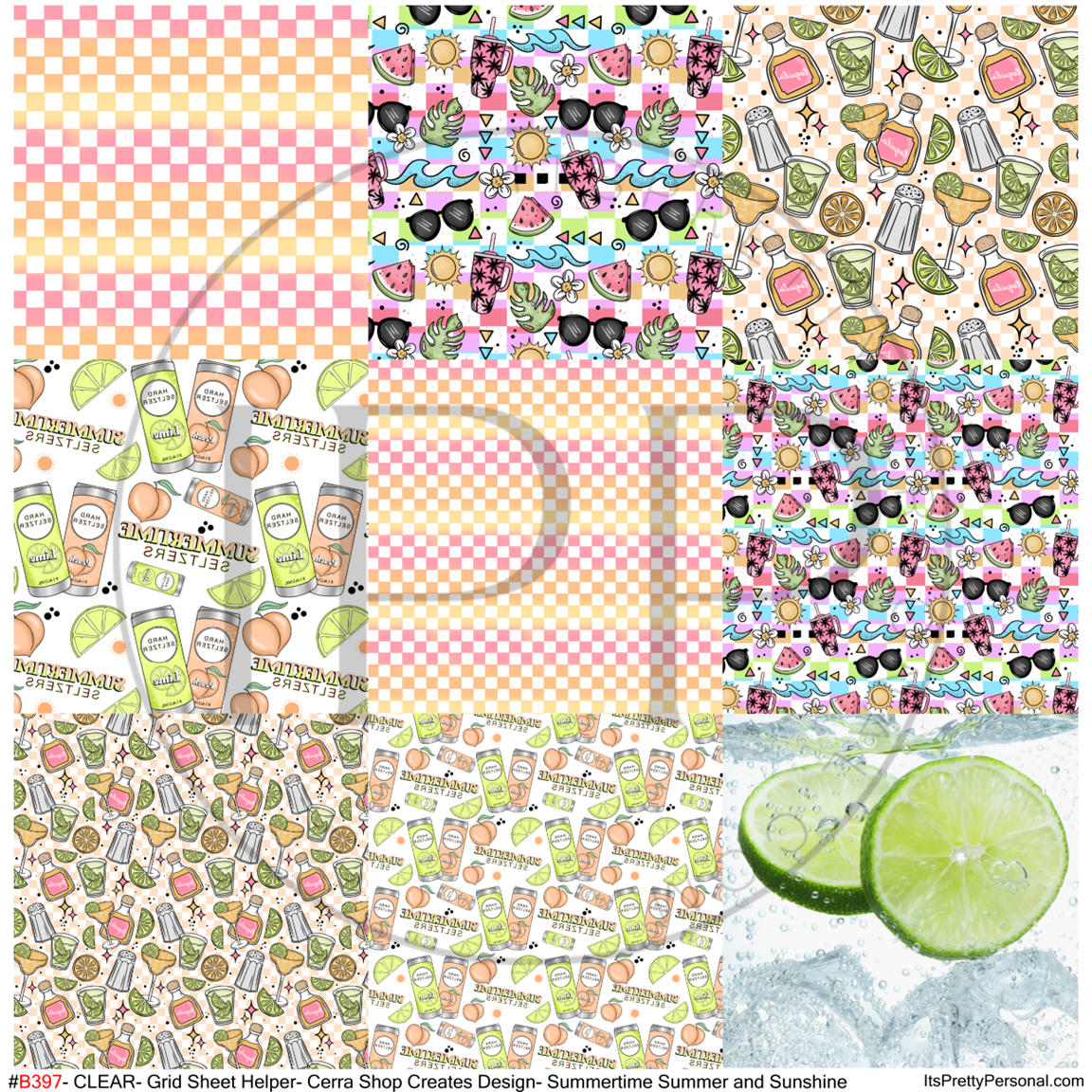 #B397-CLEAR Small Scale Ornament Grid Helper-Summer Drinks- Cerra Shop- 12x12 CLEAR Pattern Vinyl