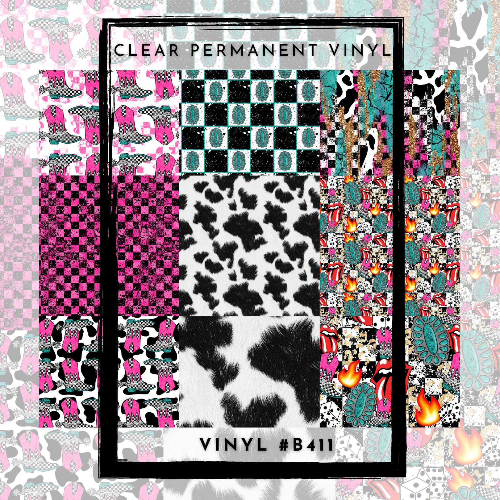 #B412-CLEAR Small Scale Ornament Grid Helper-Y'allternative Western Alternative Country Flair- 12x12 CLEAR Pattern Vinyl