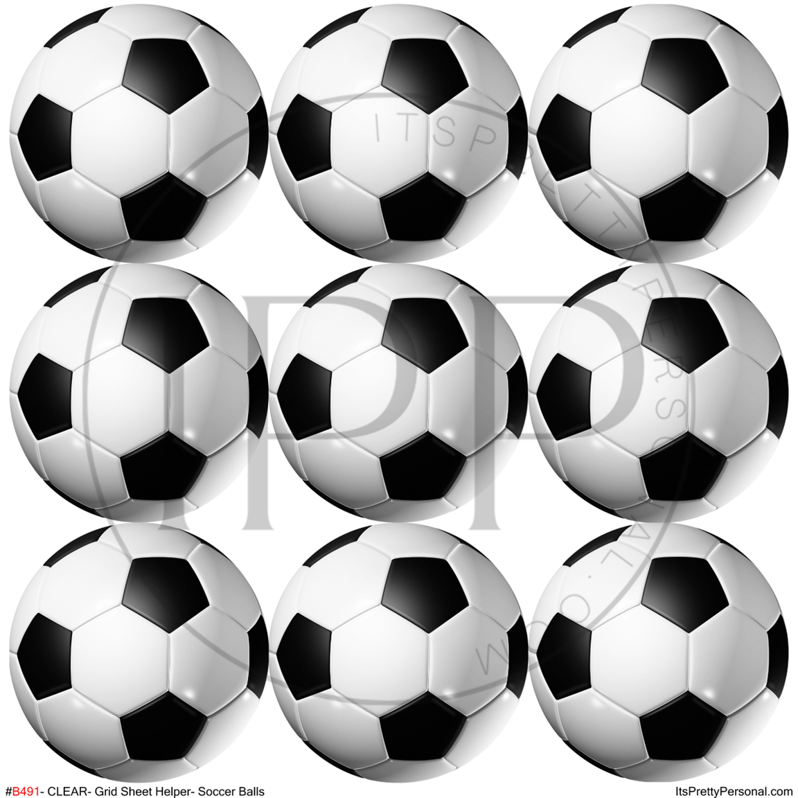 #B491-CLEAR Small Scale Ornament Grid Helper-Sports Soccer Balls- 12x12 CLEAR Pattern Vinyl