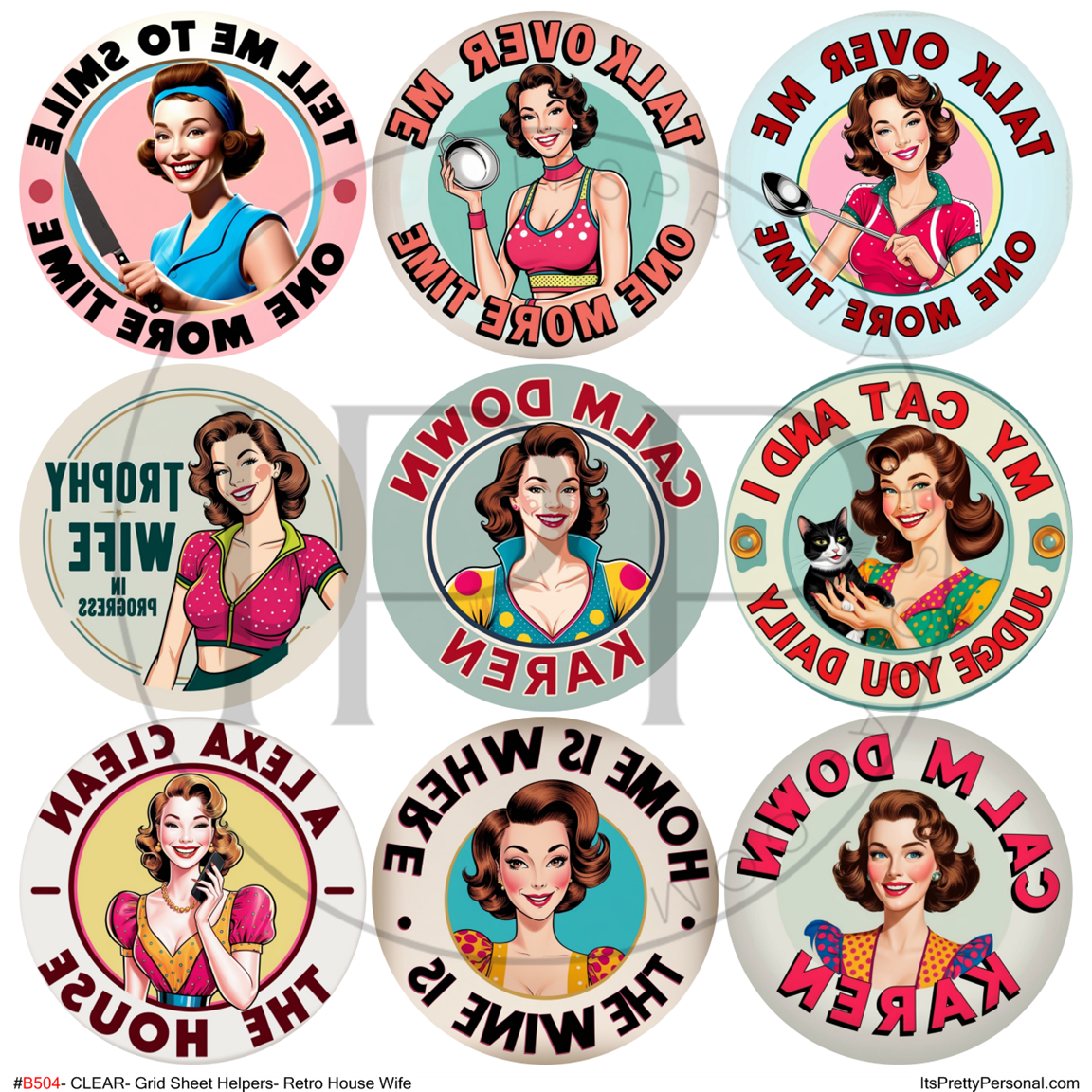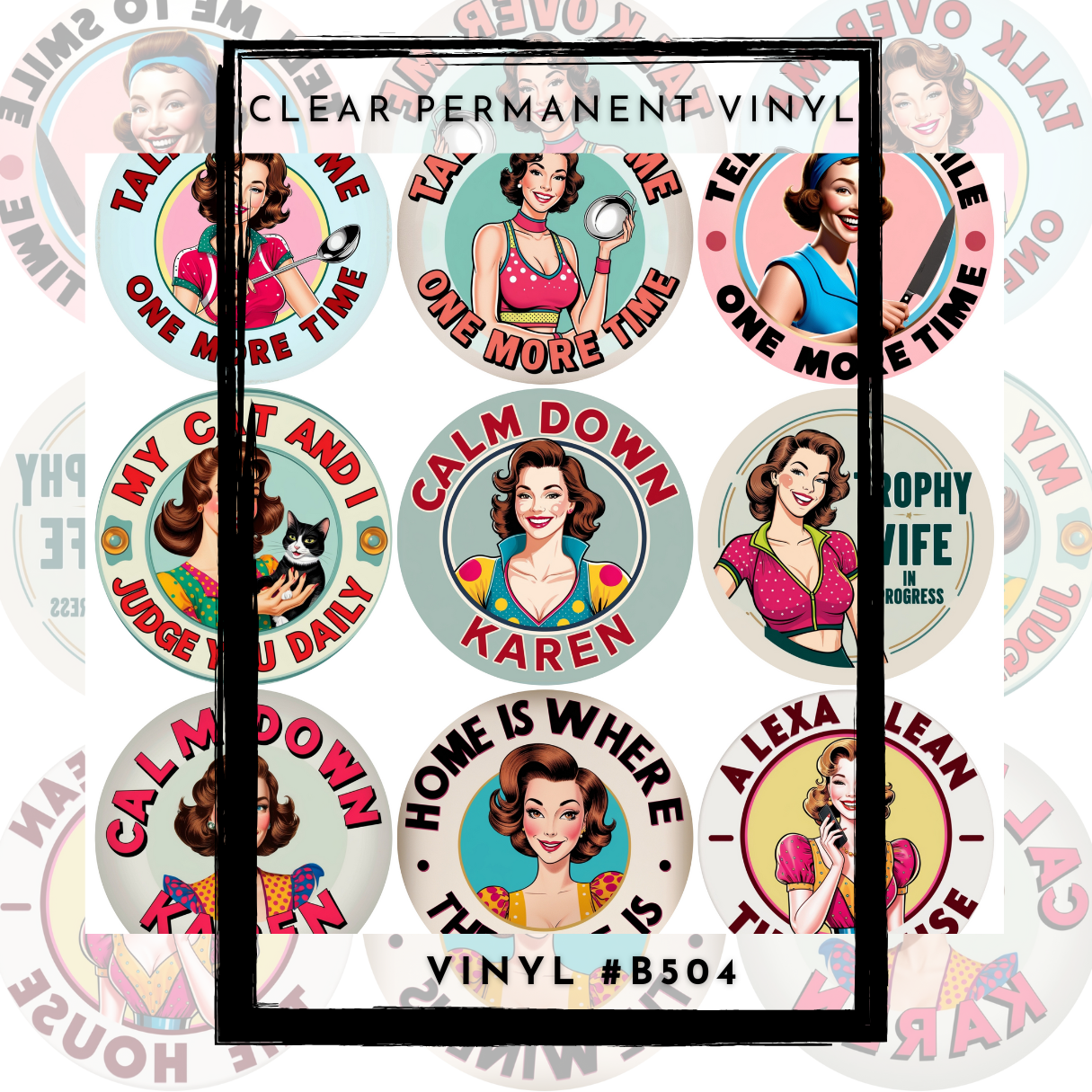 #B504-CLEAR Small Scale Ornament Grid Helper-Retro House Wife- 12x12 CLEAR Pattern Vinyl