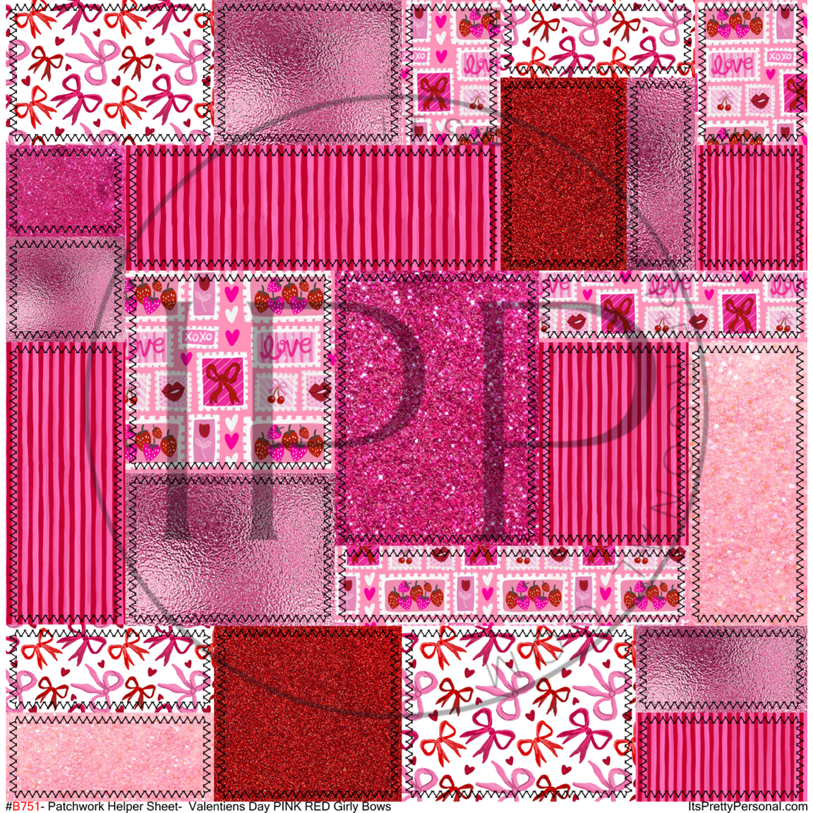 #B751- Patchwork Helper Sheet- Valentines Day PINK RED Girly Bows-12x12 Pattern Vinyl