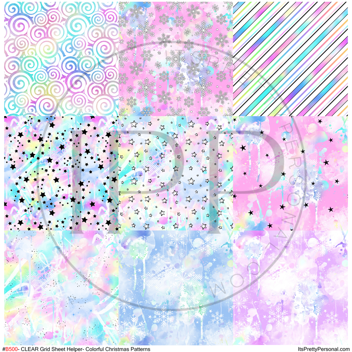 #B500-CLEAR Small Scale Ornament Grid Helper-Pastel Christmas- 12x12 CLEAR Pattern Vinyl