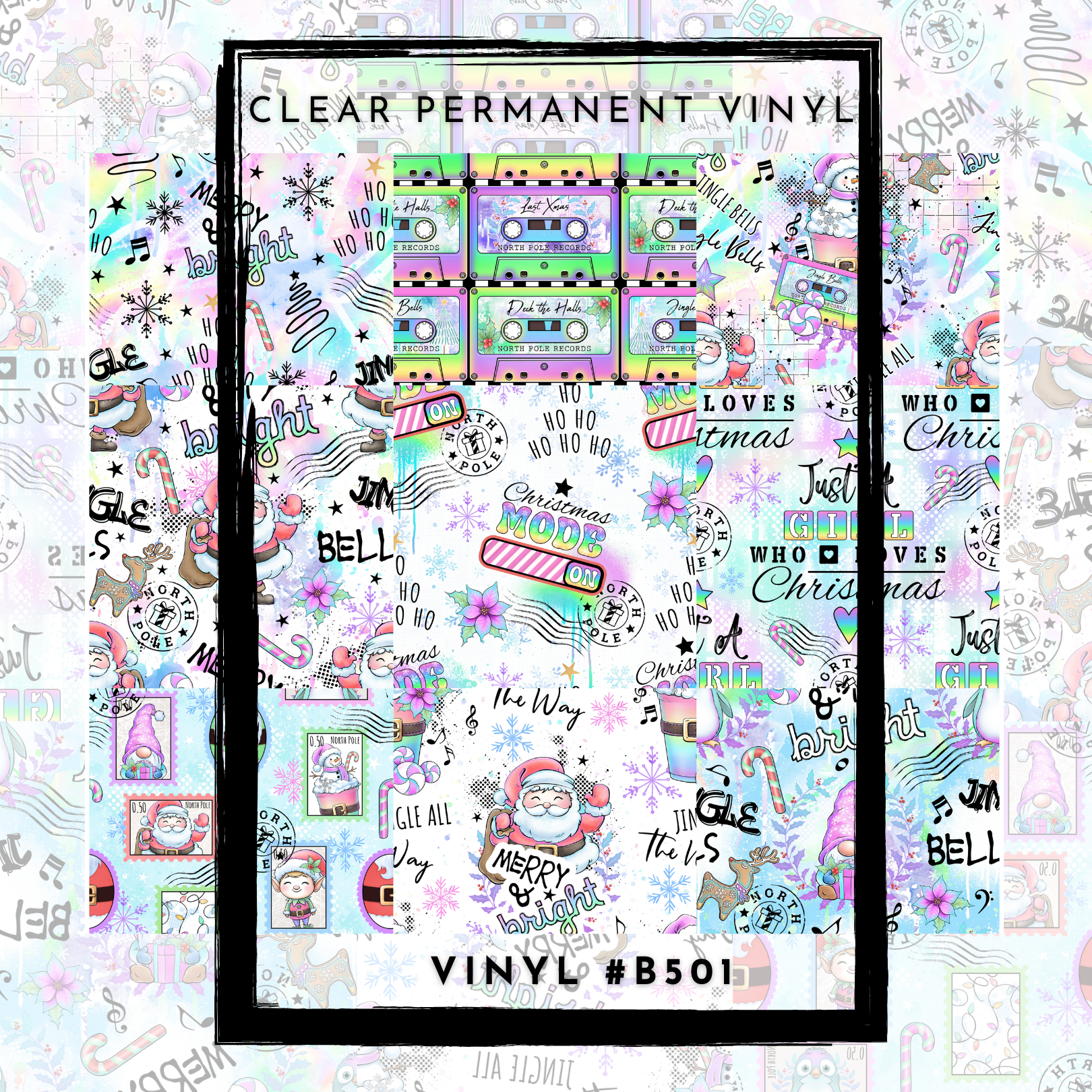 #B501-CLEAR Small Scale Ornament Grid Helper-Pastel Christmas Sayings- 12x12 CLEAR Pattern Vinyl
