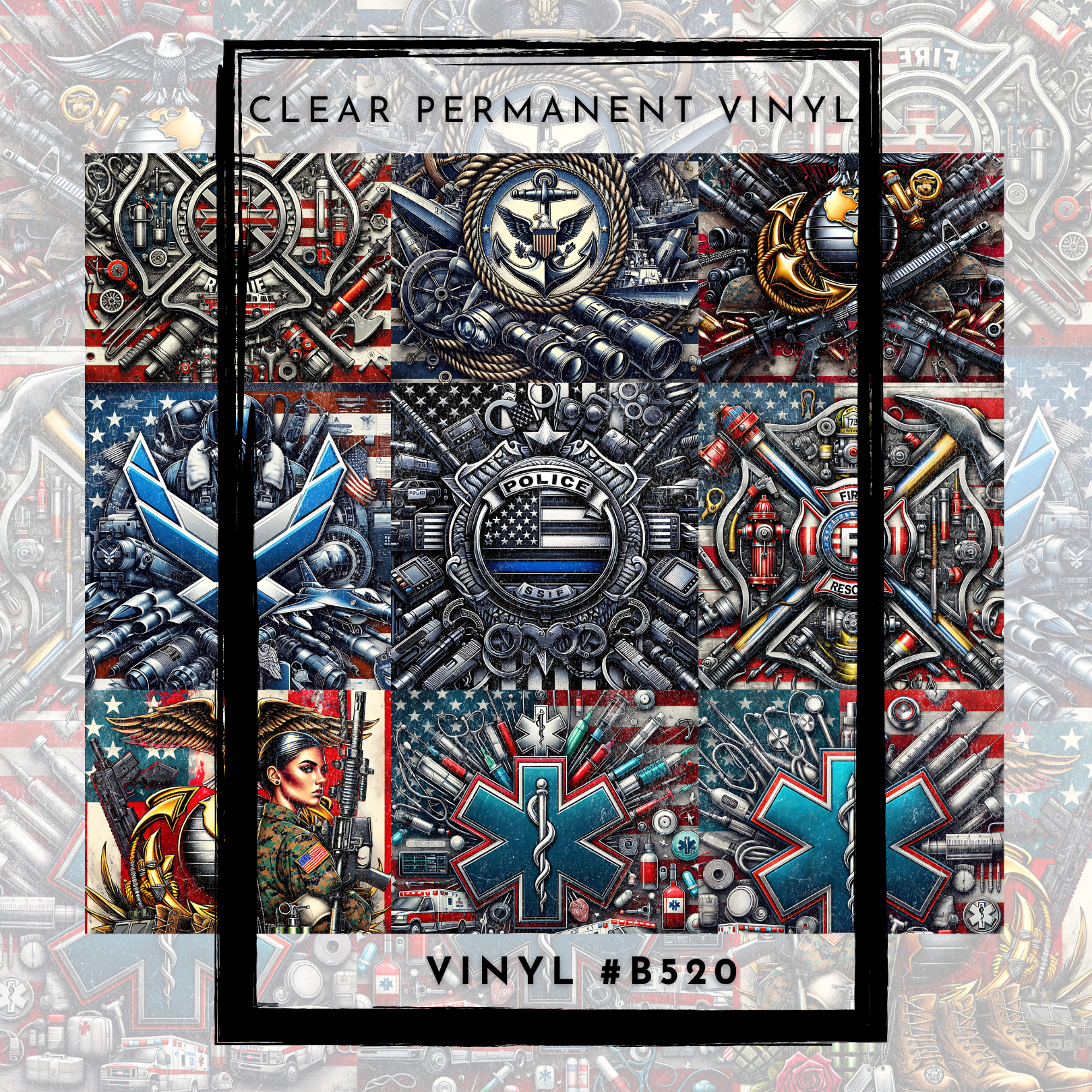#B520-CLEAR Small Scale Ornament Grid Helper-First Responders- 12x12 CLEAR Pattern Vinyl