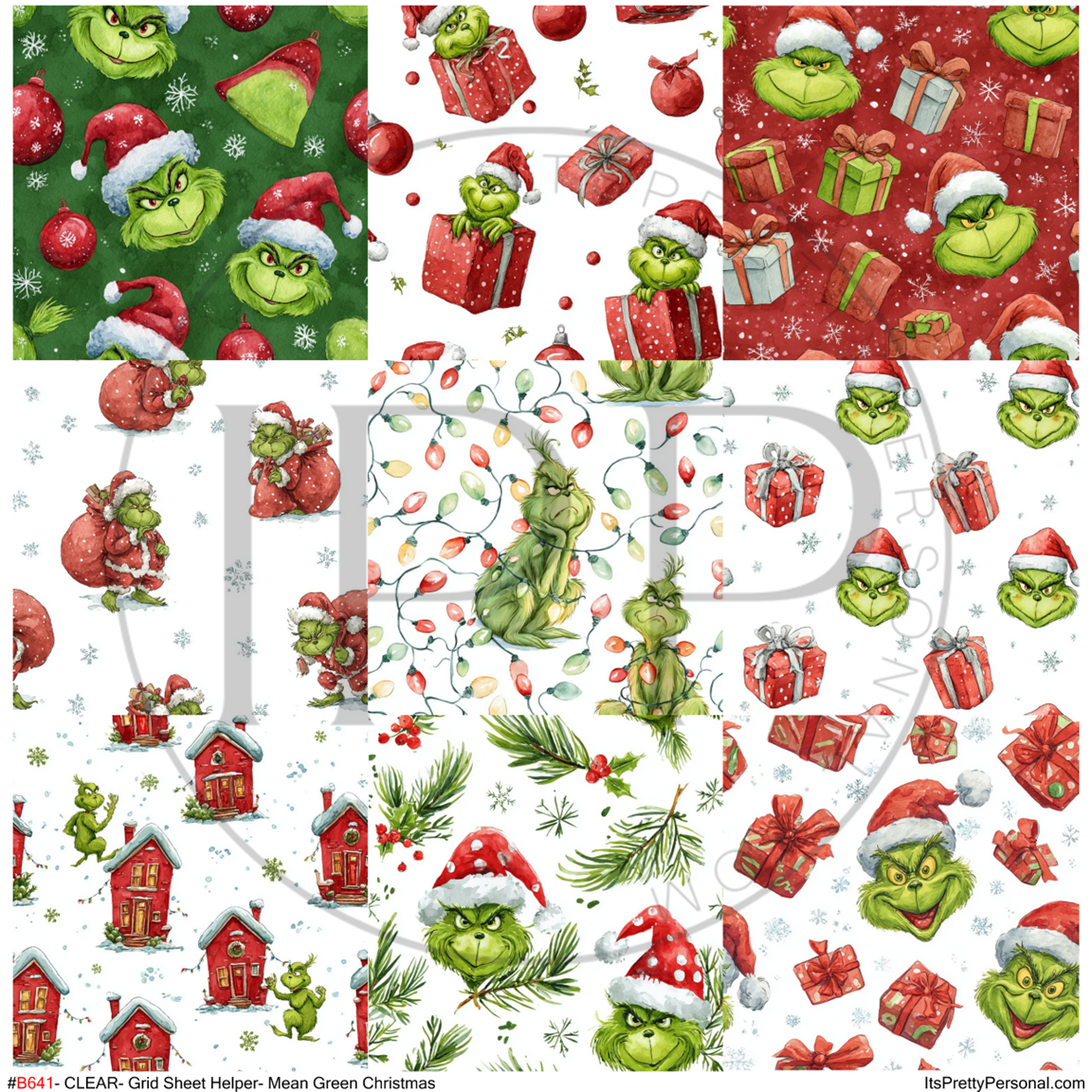 #B641-CLEAR Small Scale Ornament Grid Helper-Mean Green Christmas-12x12 CLEAR Pattern Vinyl