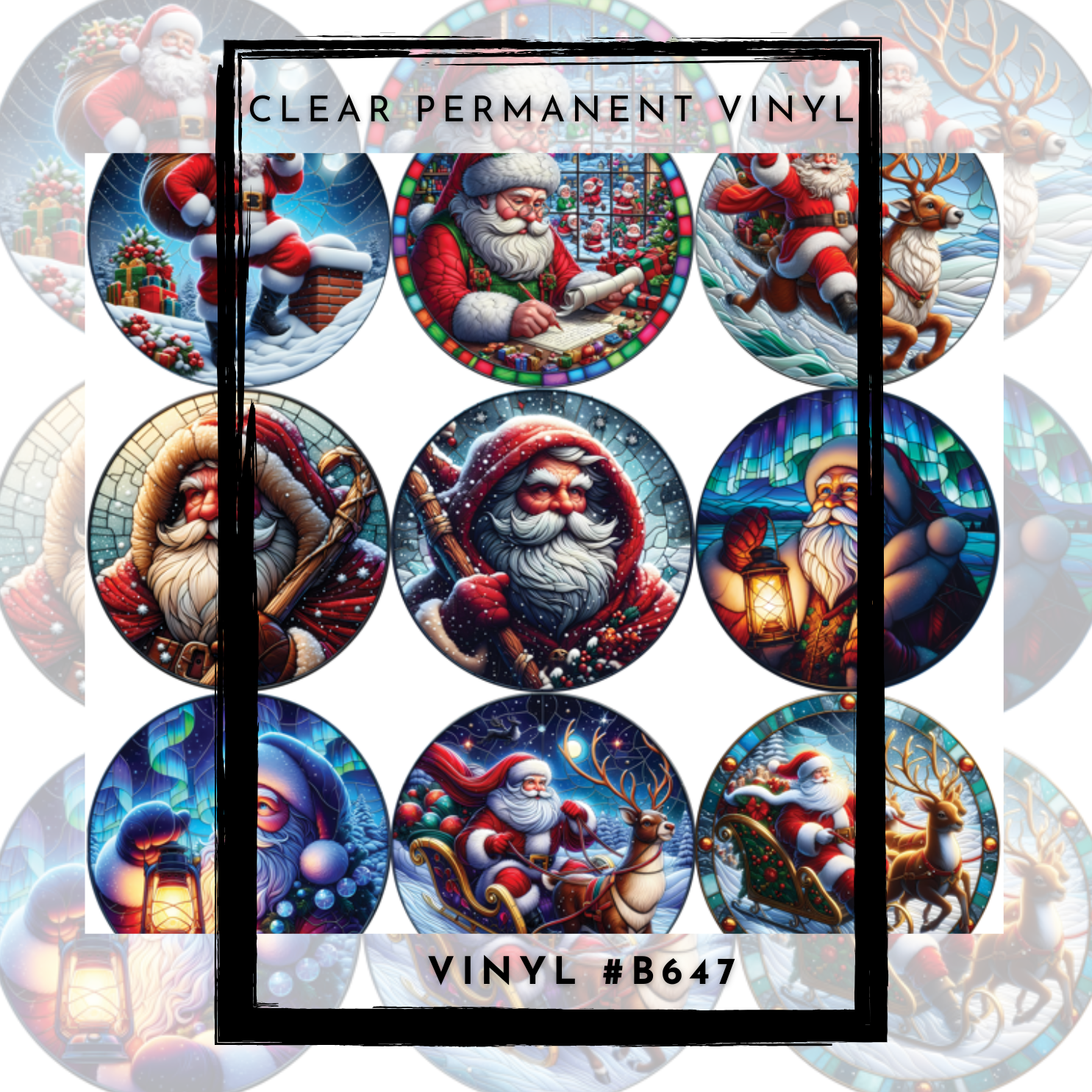 #B647-CLEAR Small Scale Ornament Grid Helper-Stained Glass Santa-12x12 CLEAR Pattern Vinyl