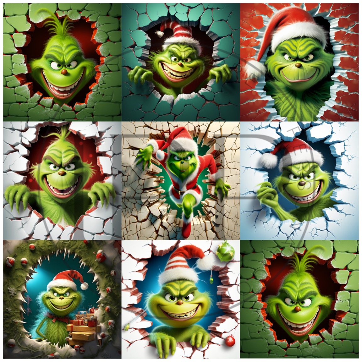 #B649-CLEAR Small Scale Ornament Grid Helper-Mean Green Santa-12x12 CLEAR Pattern Vinyl