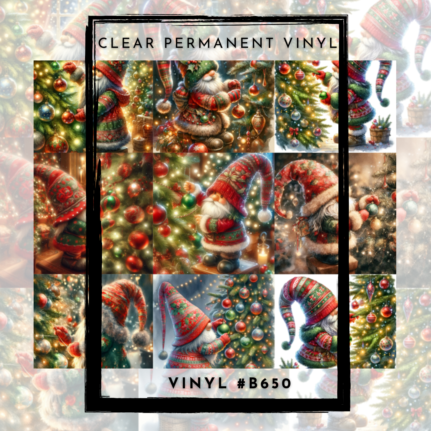 #B650-CLEAR Small Scale Ornament Grid Helper-Christmas Gnome-12x12 CLEAR Pattern Vinyl