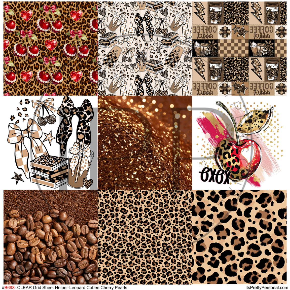 #B698-CLEAR Small Scale Ornament Grid Helper-Leopard Coffee Cherry Pearls-12x12 CLEAR Pattern Vinyl