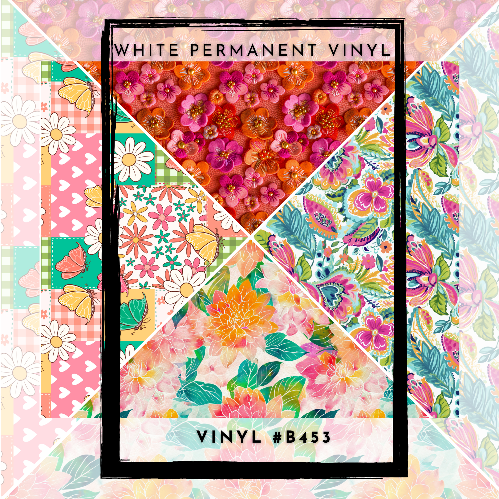 #B453-V-Split Helper-Pink Teal Orange Floral - 12x12 Pattern Vinyl