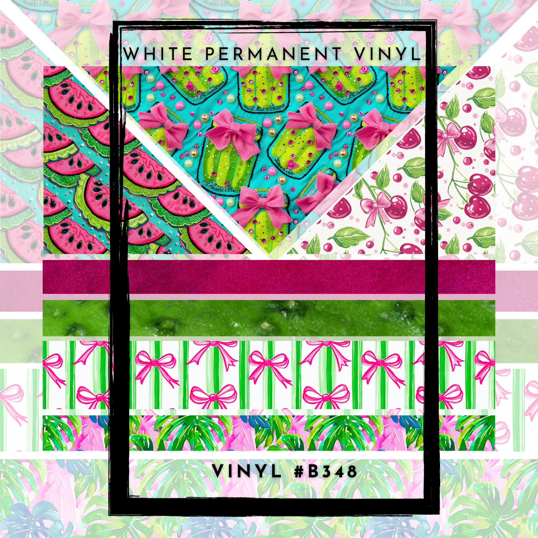 #B348-Versatile Vinyl Helper-Pink Green Pickle Watermelon Cherries- 12x12 Pattern Vinyl