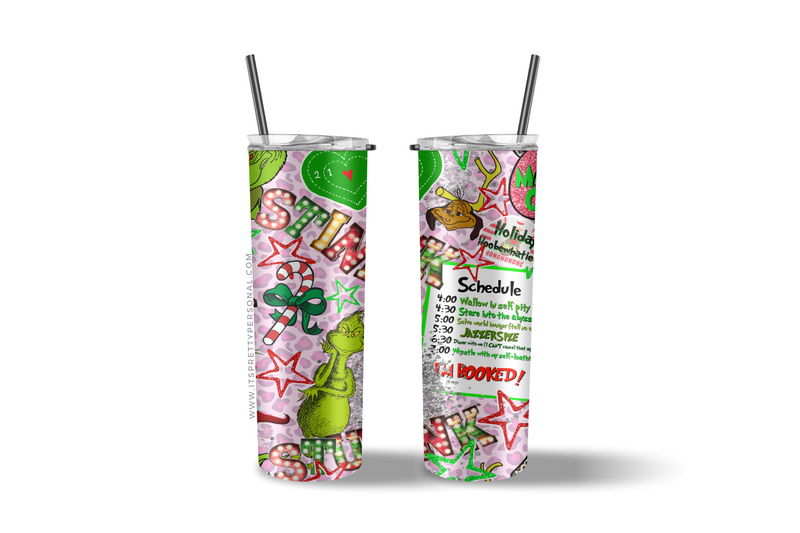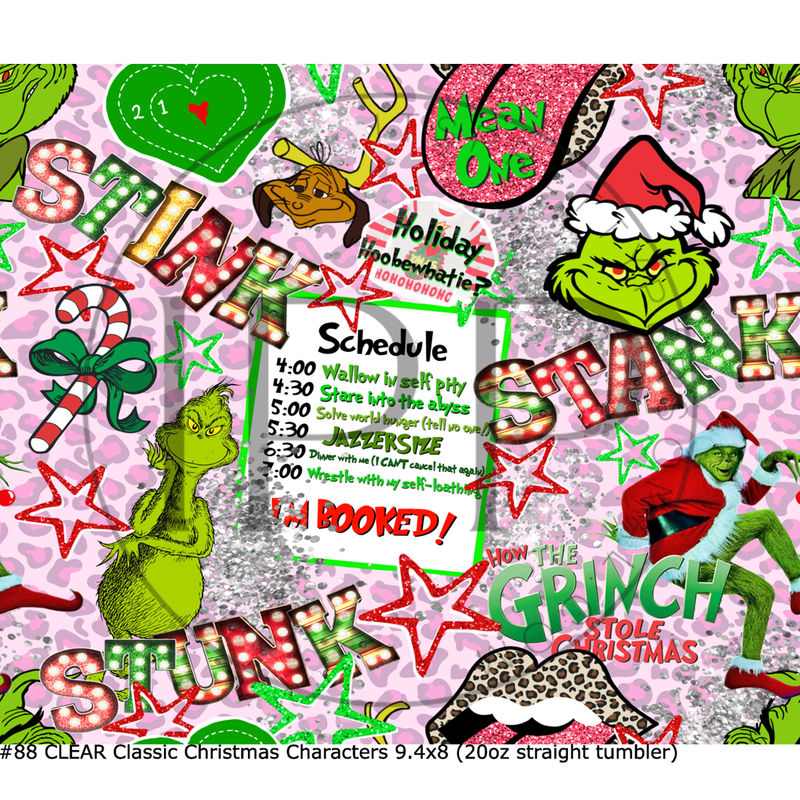 #88 CLEAR Mean Green Classic Christmas- 20oz Skinny Straight- 9.4" x 8" Pattern Vinyl Wrap