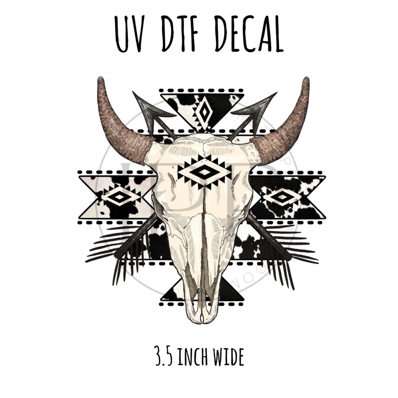 #598 Western Skull head tribal pattern - 3.5 inch wide UV DTF decal