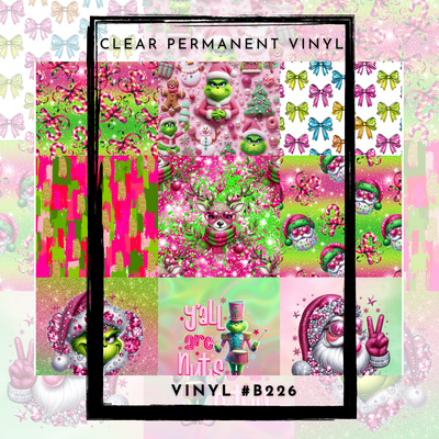 #B226- CLEAR Small Scale Ornament Grid Helper- Pink + Green Christmas -12x12 CLEAR Pattern Vinyl