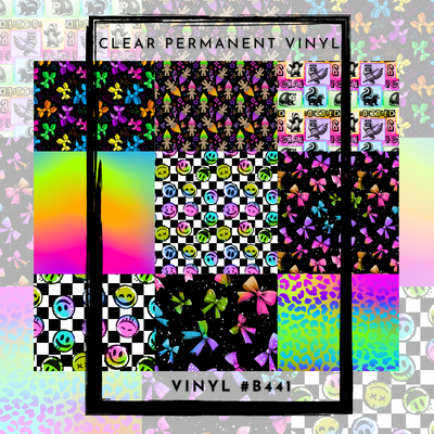 #B441-CLEAR Small Scale Ornament Grid Helper-Black Neon Rainbow - 12x12 CLEAR Pattern Vinyl