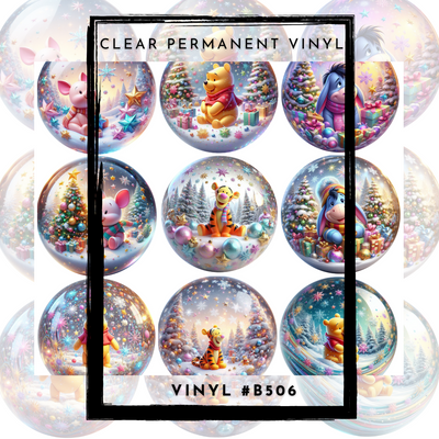 #B506-CLEAR Small Scale Ornament Grid Helper-Snow Globe Winter Pooh- 12x12 CLEAR Pattern Vinyl