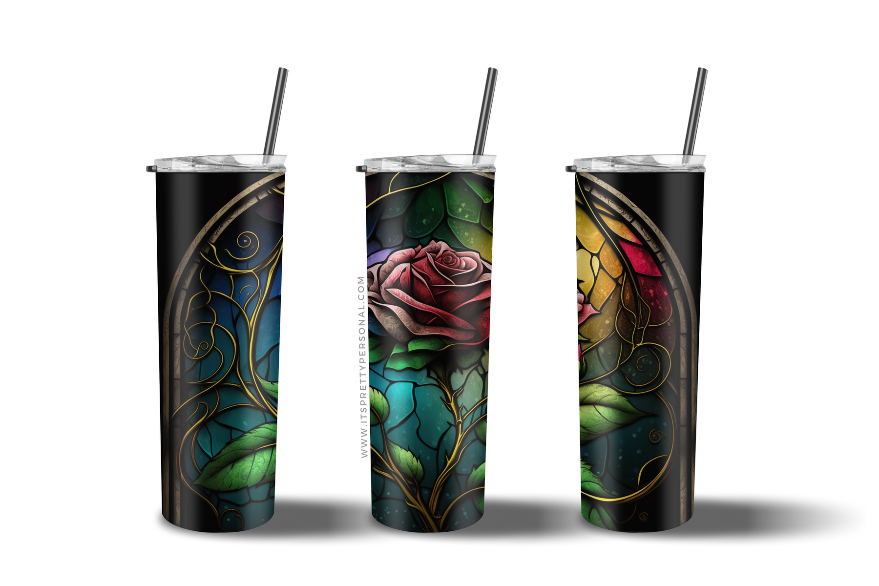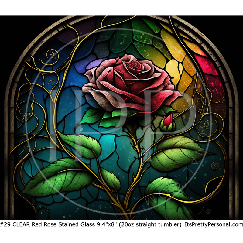 #29 CLEAR- 20oz - Stained Glass Red Rose 9.4" x 8" Pattern Vinyl Wrap