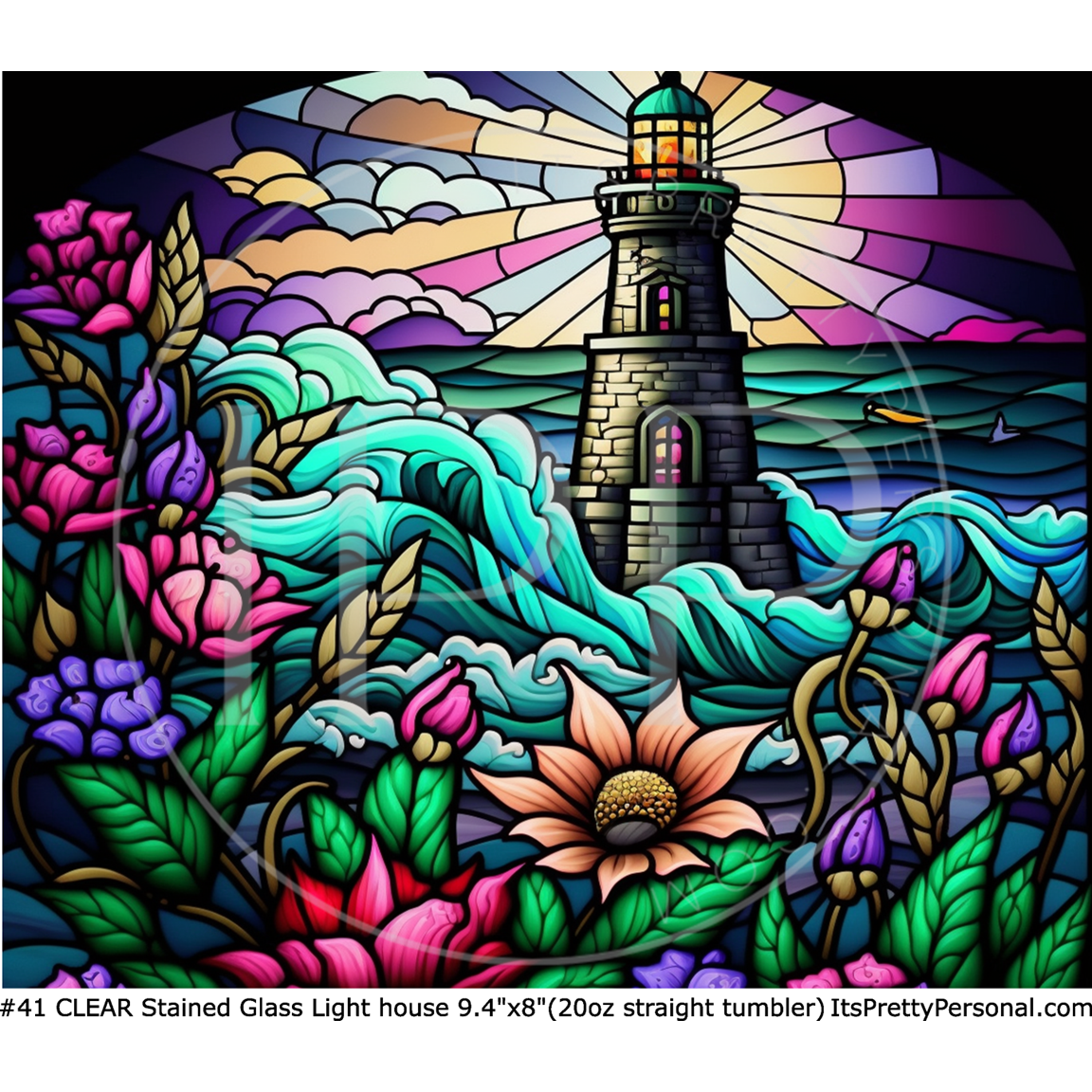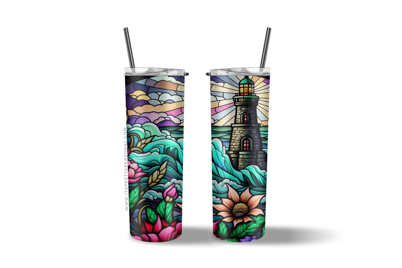 #41 CLEAR- 20oz - Stained Glass Light House 9.4" x 8" Pattern Vinyl Wrap