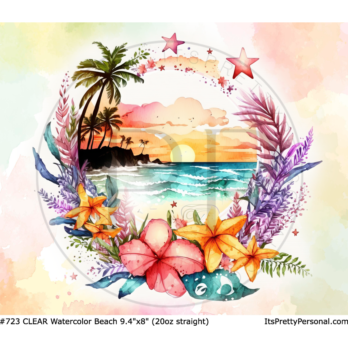#723 CLEAR- Watercolor Beach 9.4" x 8" Pattern Vinyl Wrap