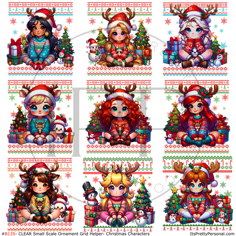 #B135- CLEAR Small Scale Ornament Grid Helper-Christmas Characters-12x12 CLEAR Pattern Vinyl